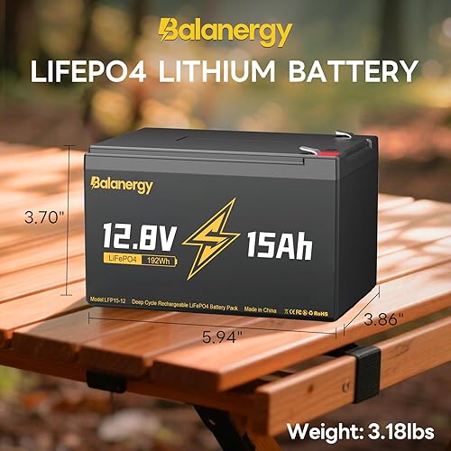 12V 15Ah LiFePO4 Battery, 3000 Deep Cycles Rechargeable Lithium Battery, Built-in 10A BMS for Solar System, Power Wheels, Fish Finder, Outdoor Camping, Scooter