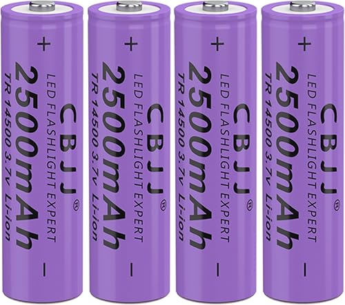 3.7V Rechargeable Battery 2500mAh 3.7V Battery for Flashlight, Headlamp, Purple-2Pcs