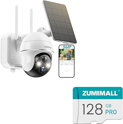 ZUMIMALL 5MP Security Cameras Wireless Outdoor, Solar Security Camera Outdoor with 360° PTZ, Battery Powered Camera for Home Security Outside, 128GB SD Card for Security Cameras