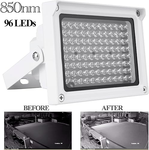 850nm IR Light, 96 LED Infrared Light, IP65 Waterproof IR Illuminator, IR Lights for Night Vision, CCTV Security Cameras, Indoor Warehouse Outdoor Backyard, Range 65.6ft, Angle 60 Degree