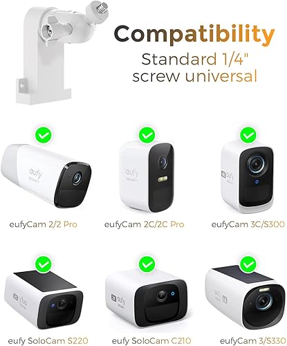 Wall Mount Compatible with eufyCam 2C/2C Pro, 2/2 Pro, 3C/S300, 3/S330, Also for SoloCam S220/C210, Adjustable Camera Mount Brackets for Eufy Camera Indoor/Outdoor, 2Pack