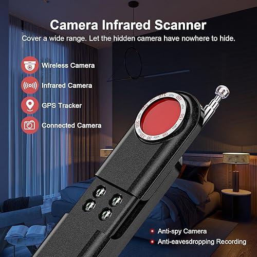 Hidden Camera Detectors - 2025 Camera Detector, Hidden GPS Tracker Detector, Listening Device Detector, Camera Detector Device for Hotels/Cars/Travel/Office, 6 Levels Sensitivity, Black