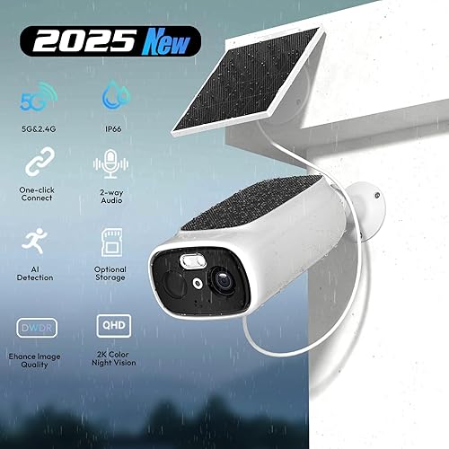2.4G/5G WiFi Cameras for Home Security, 2K Solar Camera Outdoor Wireless, Color Night Vision Spotlight Camera with 130°Wide View,2-Way Audio, IP66, Cloud/SD, AI Detection, Works Alexa/Google Home
