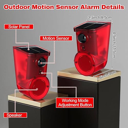 Focket Solar Driveway Alarm, Outdoor Motion Detector with Rechargeable Battery for 800m 874.9yd IP55 Weatherproof Cordless Solar Powered Driveway Alarm Outdoor
