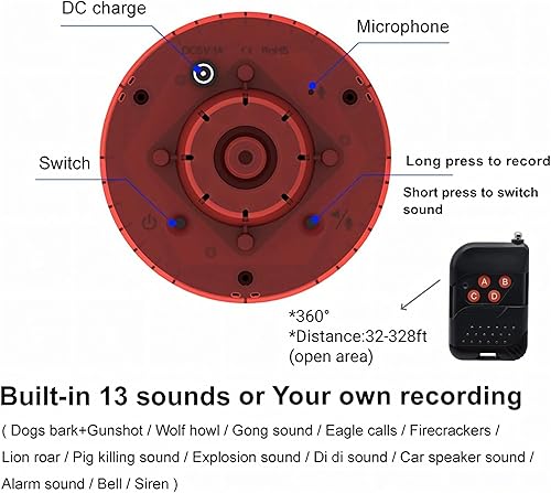 Solar Sound & Light Alarm, 360° Motion Detector Dog Barking Alarm with 129 dB Loud Noise Maker, Recording Function, 13 Types of Flashing Light Sound Combinations for Home, Farm
