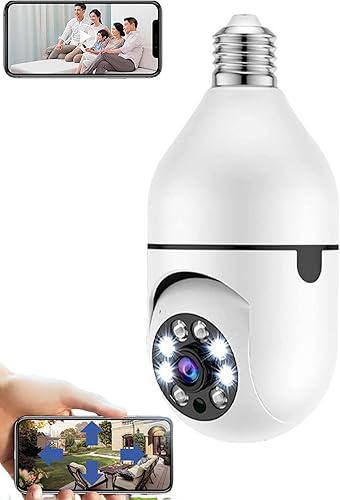 Light Socket Lightbulb Camera Lightbulb Security Camera, Security Cameras Wireless Outdoor Bulb, 360 Night Vision and Easy Installation,Perfect for Home Security Outside Indoor (1)