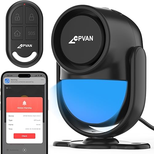 CPVAN Home Alarm System with PIR Motion Sensor, WiFi Wireless DIY Smart Door/Window Alarm for Home Security with Phone APP Alert 9 Pieces-Kit (Indoor PIR Alarm Host, 1 Remotes), Black