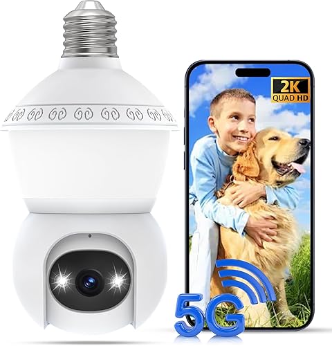 Smart Light Bulb Security Camera, Security Bulb Camera with Light Wireless, 5G & 2.4G WiFi Light Bulbs Camera Outdoor,Cameras for Home Security, AI Detection,2-Way Audio,Night Vision,Work with Alexa