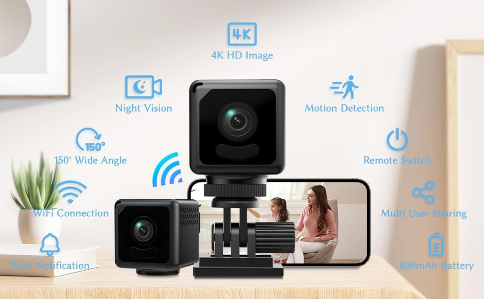 Mini Camera - Small Camera Wireless - 4K HD WiFi Cameras for Home, Office, Nanny Cam for Pets, Babies, Micro Cameras with Motion Detection