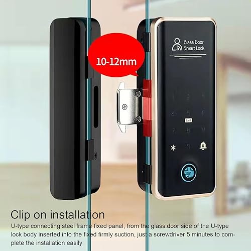 Luqeeg Fingerprint Door Safety Lock, Voice Alarm Doorbell, 6 Months Battery Life & Emergency Charger, Double Hook Design, Attendance Function, for Frameless Glass Door