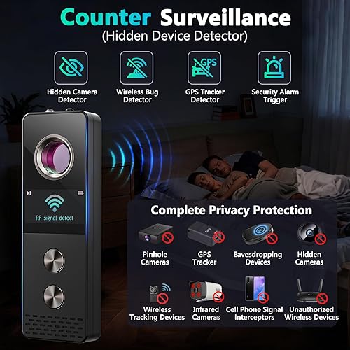 Hidden Camera Detector & Anti-Theft Alarm, 3-in-1 Spy Bug Finder + Security Sensor with Flashlight - Portable RF/Magnetic Detectors for Travel, Hotel, Home, Car