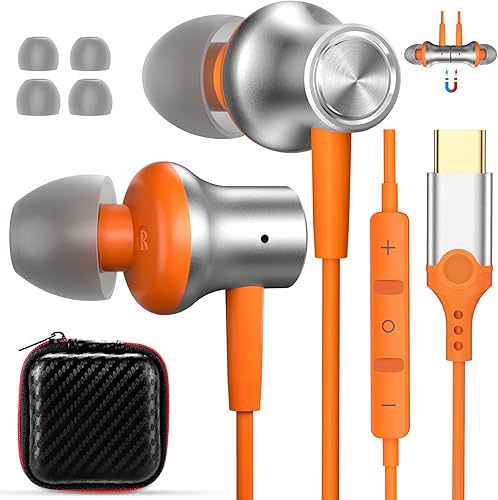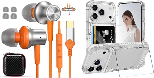 for iPhone 17 Pro Max 6.9 Case Wallet with Kickstand, USB C Earbuds for iPhone 17 Pro Max Air 16 16e 15 Type C Earphone for iPad A16 10 Magnetic Wired Headphone Samsung S25 FE S24 Ultra S23