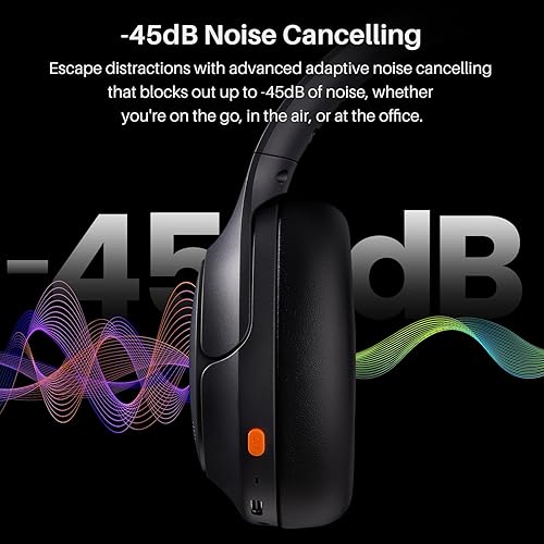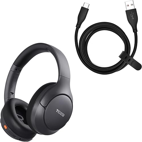 TOZO HT3 Hybrid Noise Cancelling Headphones, 90H Playtime Wireless Over Ear Bluetooth Headset,USB-C to USB-A Charging Cable Supports 480Mbps
