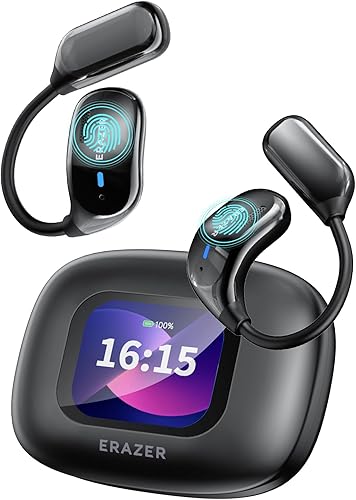 Open Ear Earbuds Lightweight Comfort Clip Wireless Earbuds Sweat Resistant Bluetooth Headphones Sport Headphones for Workouts and Running with Dual Digital Display 44H Playtime IPX7 Waterproof
