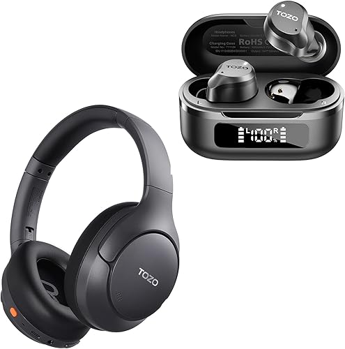TOZO HT3 Hybrid Noise Cancelling Headphones, 90H Playtime Wireless Over Ear Bluetooth Headset, New NC9 Hybrid Active Noise Cancelling Wireless Earbuds