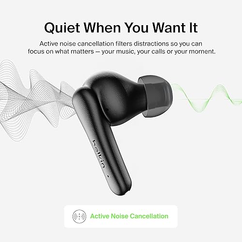 Belkin SoundForm Rhythm ANC True Wireless Earbuds w/Built-in Microphone, USB C Fast Charging, 28H Battery Life, IPX5 Water Resistance - Bluetooth Earbuds for iPhone, iPad, Galaxy, Pixel, etc. - Black