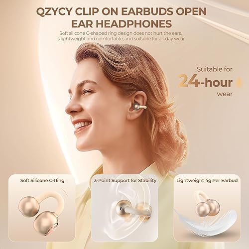 Clip On Earbuds Open Ear Headphones - No Hurt Ears, Wireless 5.4 Earphone with Mic, 40H Playtime, Premium Audio, Charging Case Lighting Effects, for Office, Sports, Gold - DL3