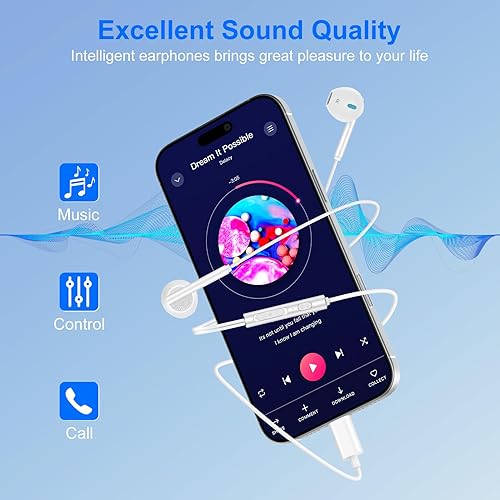USB C Headphones Wired Earbuds for iPhone 17 Pro Max/17 Pro/Air/17/16e/16/15,Android Type C HiFi Stereo Earphones Wired with Mic & Volume Control for Samsung Galaxy S25 Edge/S24 FE,Google Pixel 10/9/8