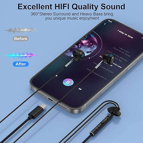 Samsung USB C Headphones Wired Earbuds for Samsung Galaxy A17 A16 5G A15 S25 Ultra S24 FE S23 S22 S20 iPhone 16 Pro Max 16e 15 Headphones with Microphone Bass Stereo Noise Canceling Wired Earphones