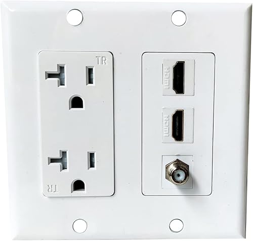 Double Gang Power Outlet with 2 Port HDMI 1 CAT6 Ethernet Wall Plate, 2 Gang Receptacle Outlet with 2 4k/8K HDMI Jack + 1 CAT 6 Keystone Jack Cover Plate - White