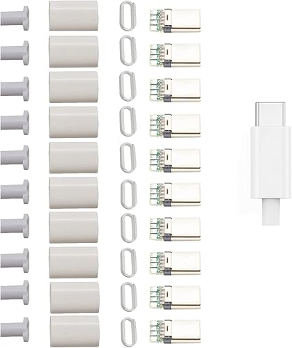 10 Sets White USB 3.1 Type C Connector 24 Pin Male Plug DIY Solder Wire USB C Male Adapter Cable for DIY Data Line Interface Male (White)