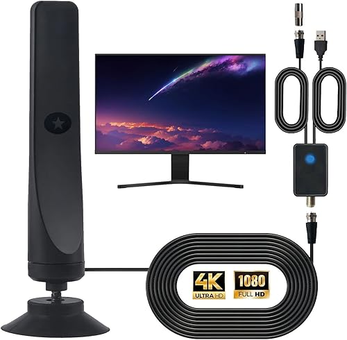 2025 Upgraded TV Antenna Indoor, Strong Signal Digital Antenna for Smart TV Indoor, HDTV Antenna for Local Channels with Amplifier, Outdoor Antenna Support 8K 4K 1080p All TVs -38FT Coax Cable