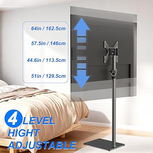 TV Stand with Mount 70” Height Adjustable Floor Monitor Stand 360°Swivel Universal Tiltable Tall TV Floor Stand for 12 to 43 inch Flat Screen Bedroom Curved TVs Display Trolley Stand