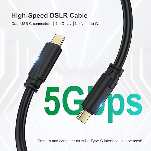 COOYA Camera Tethering Cable USB C to USB C 5Gbps Fast Transfer & Connection Between Camera and Computer+Cable Lock Clamp for Sony A7 IV/III, A7R IV, A7C2, Canon R10 R8 R6 R5 Nikon Z9 Z8 Z7, 16.4 ft