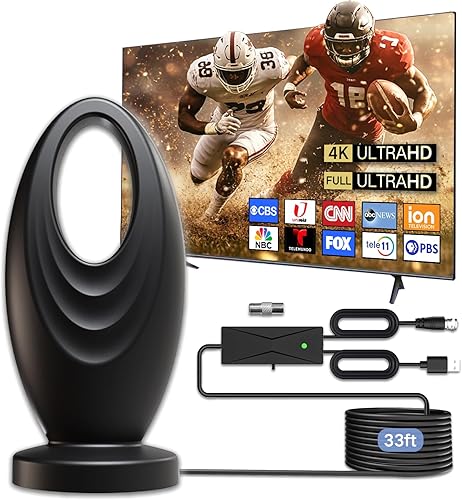 2025 TV Antenna for Smart TV and Old TV, 2200+ Miles Range HD Digital TV Antenna Indoor with 360° Signal Strongest Booster, Supports Local Channels 1080P 4K Reception for Home, RV, Camping (33ft)