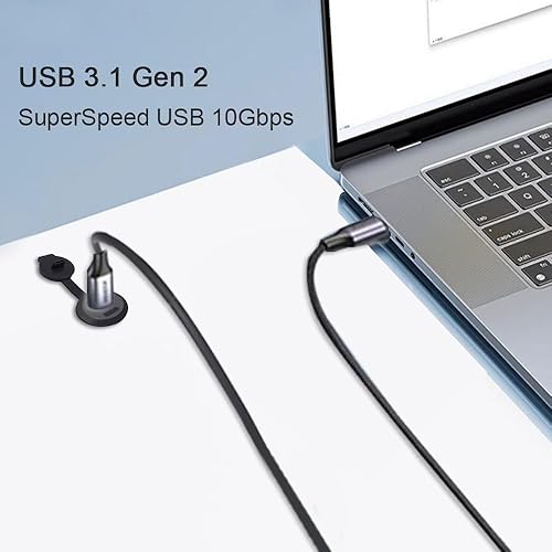 USB C 3.1 Panel Mount Female to Male Connectors SuperSpeed USB 10Gbps 1m/3.28ft USB 3.1 Gen 2 Threaded Flush Mount Cable for Sofa, Office Tables,Car