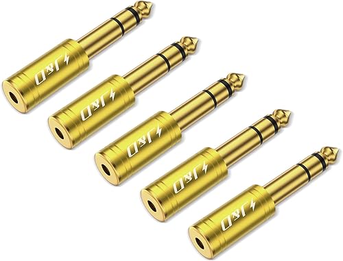J&D 5-Pack 1/4 to 1/8 Headphone Adapter, 6.35 mm to 3.5 mm Stereo TRS Male to Female, Gold-Plated 3.5mm Plug Jack Connector for Guitar, Amp, Keyboard, Bass, Yellow