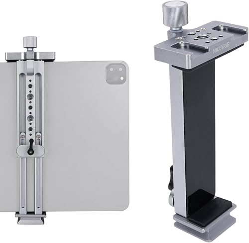 NICEYRIG Tablet Tripod Mount Aluminum Holder for iPad mini 8.3'' 7.9'', iPad Air, iPad Pro, 130mm - 223mm Adjustable Mounting Clamp with Double Locking Points, Quick Release Plate for Arca-style - 616