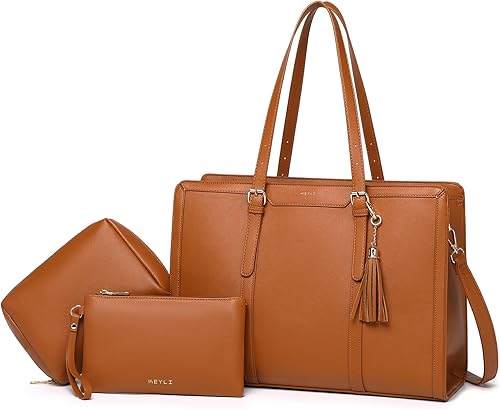 Keyli 4pc Sets Laptop Bag for Women Large Leather Laptop Briefcase with USB Charging Port Computer Shoulder tote Bags Purse