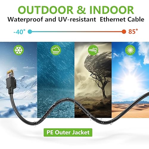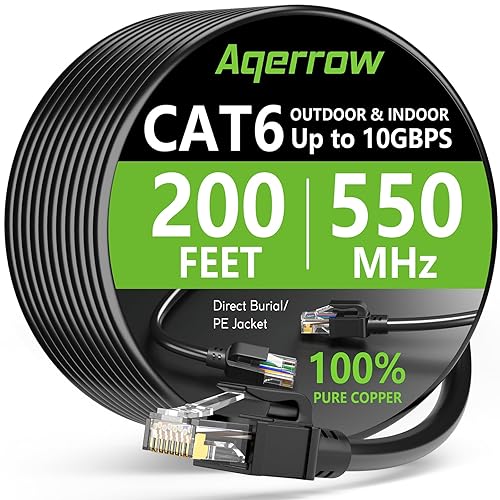 Cat 6 Ethernet Cable 200 FT,10Gbps Ethernet Cable, High Speed UV Resistant, Direct Burial, Waterproof, Outdoor&Indoor RJ45 Cat6 Cable LAN Internet Cable for Router, Modem, PS4/5, Xbox - Black