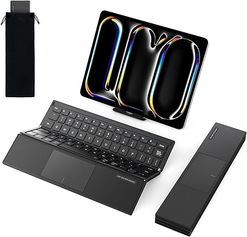 SODI Portable Tri-Fold Bluetooth Keyboard with Touchpad, Full Size Keys, Wireless Folding Travel Keyboard, Multi-Device Rechargeable for iPad, iPhone, Android, Windows, Mac