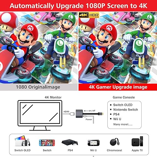 Game Console 4k Upscaler,Upgrade Your Graphics Card in Real Time with No Lag,Enhance the original 2K game console to 4K@60 display,for Nintendo Switch,Wii, DreamCast,Xbox,Playstation,Gamecube and more