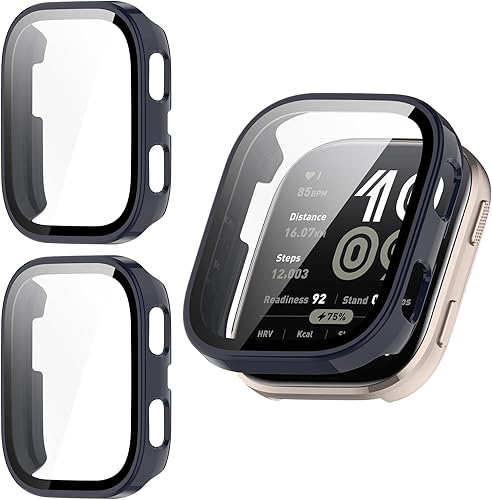 2 Pack for Amazfit Bip 6 Screen Protector Case [Full Coverage], Hard PC Bumper All-Around Protective Accessories for Amazfit Bip 6 Built-in 9H Tempered Glass Film