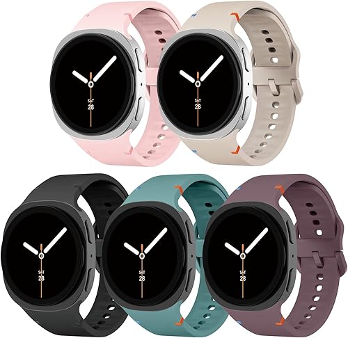 5 Pack Sport Silicone Bands for Samsung Galaxy Watch 8 Band 40mm 44mm/Watch 8 Classic Band 46mm Men Women,No Gap Waterproof Rubber Strap for Samsung Galaxy Watch 8 Classic Bands 46 mm/8 44 mm 40 mm