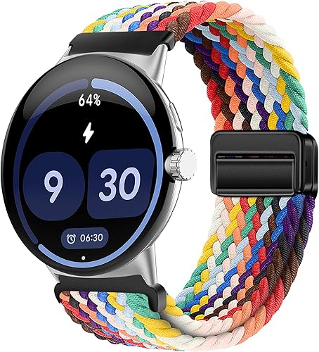 Braided Watch Band Compatible for Google Pixel Watch 4 (45mm), Magnetic Buckle Strap, Breathable Soft Nylon Elastic Sport Wristband for Pixel Watch 4 45mm