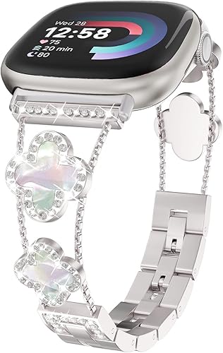 Cool Chain Metal Smartwatch Strap Compatible with Fitbit Versa 4 Bands for Women Adjustable Replacement Bracelet for Fitbit Versa 4 Bands for Woman