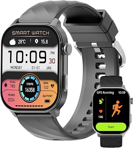 Smartwatch for Men and Women–2.01'' HD Display, Built-in GPS, Bluetooth Call, Fitness Watch, Calorie and Sleep Tracker, Smart Watch for Android Phones and iPhone Compatible, Black, A2