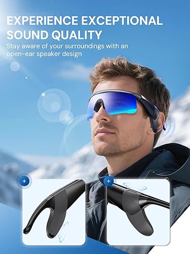 Music Smart Sunglasses,Bluetooth Cycling Glasses Women & Men with Open Ear Speaker,UV400 Polarized Protection and Voice Control for Running Fishing Outdoor