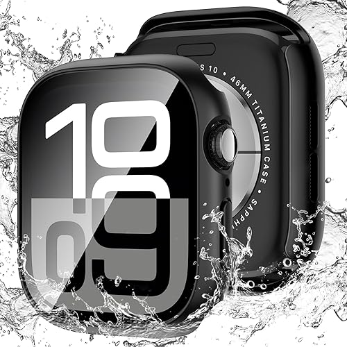 LETOID Waterproof for Apple Watch Series 11 10 Screen Protector Case 46mm, iWatch Face Cover, Hard PC Protective Bumper with Tempered Glass Accessories for Men Women 46 mm Starlight