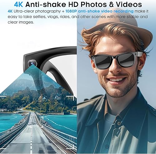 AI Smart Camera Glasses with 4K Ultra-Wide Anti-Shake Camera,HD1080P Videos, Vlog Recording, AI Translation, AI Voice Assistant, Open Ears, Wi-Fi Transmission, Music Control Sunglasses