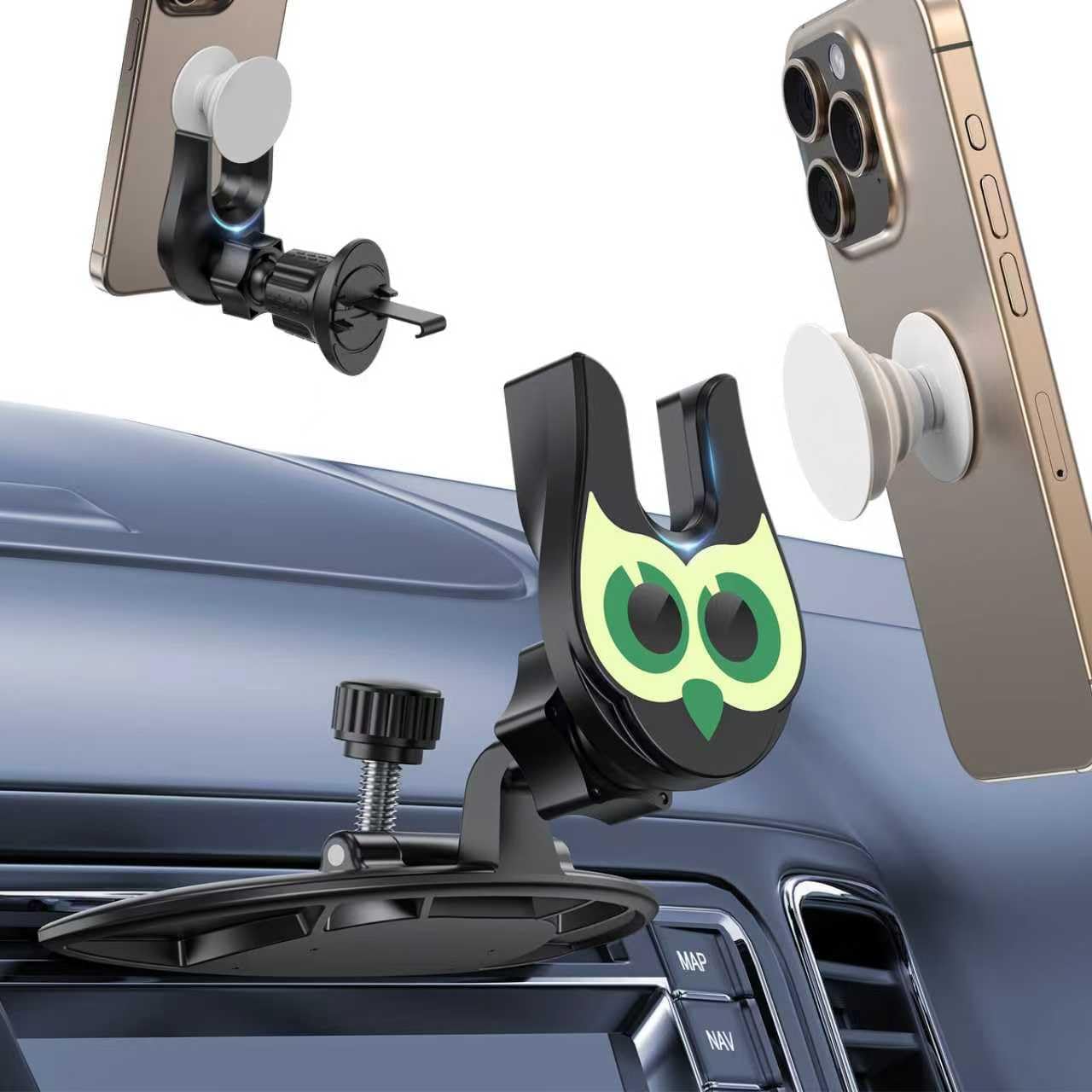 Car Phone Mount for Socket Grip, 2-in-1 Owl CD Slot and Car Vent Phone Mount Tool-Free Installation, 360°Rotation Car Phone Holder Fit Phone with Socket Grip