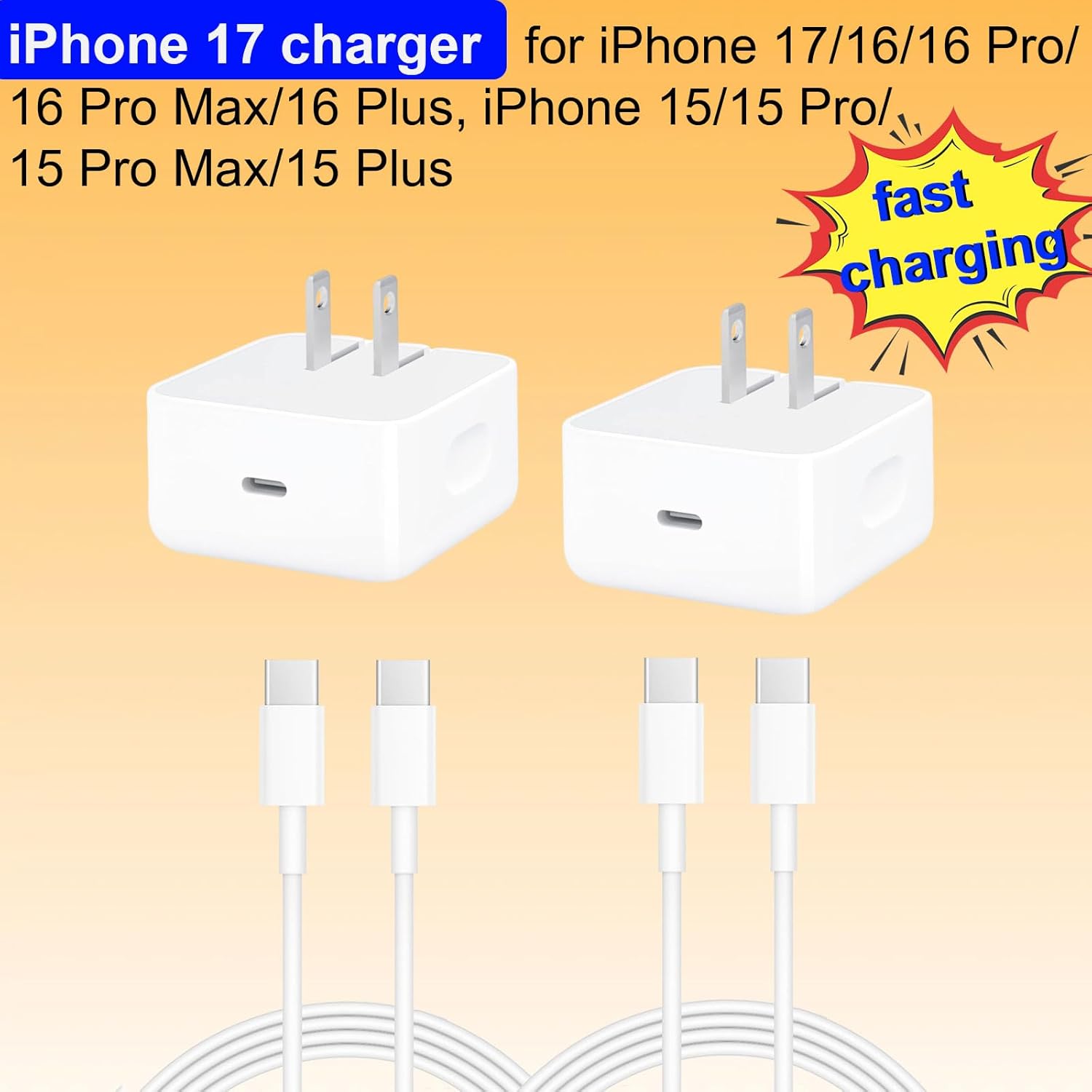 USB C Fast Charger, USB C Charger Block with 6FT Type C Charging Cable Compatible for iPhone 17/17 Plus/17 Pro Max/16/16 Plus/16 Pro/16 Pro Max/15/15 Pro Max