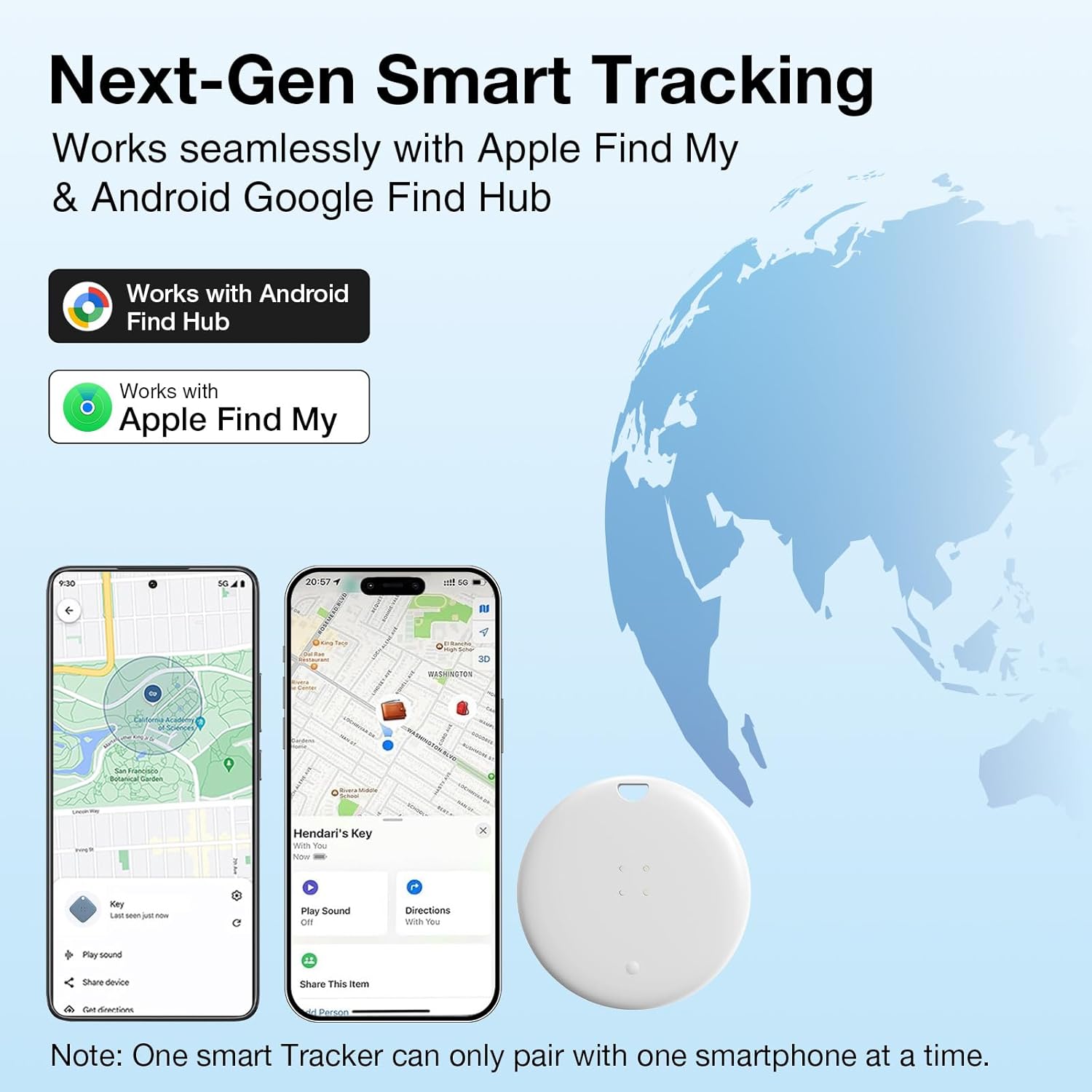 OTIC Smart Tracker Works with Apple Find My & Google Find Hub, Key Finder & Item Locator for Wallet, Keys, Bag, Luggage,IP67 Waterproof, 18-Month Battery+White (Round White 2Pack)