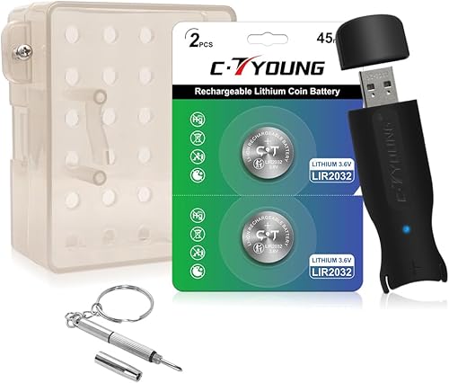 2032 Batteries 2 Packs with Rechargeble Coin Button Battery Charger USB Port Widely Charge LIR2032,LIR2016,LIR1632 and LIR2025 (with Locking Storage Case for Added Safety)