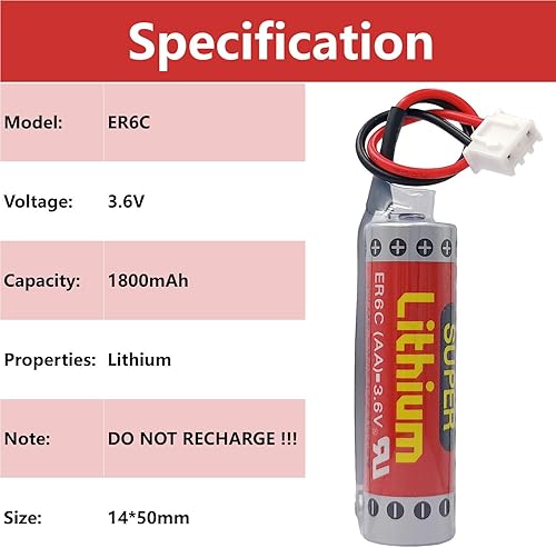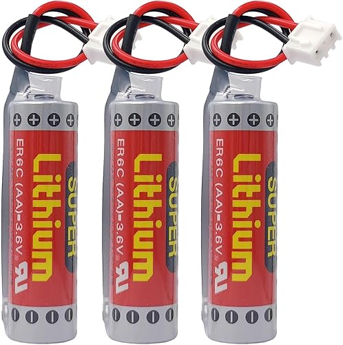 (3 Pcs/Set) 3.6V 1800mAh ER6C AA Battery Replacement for fx2n-128mr fx1n PLC Battey with Plug (3.6 Volt, 1.8 Ah, Non-rechargrable, White Plug)