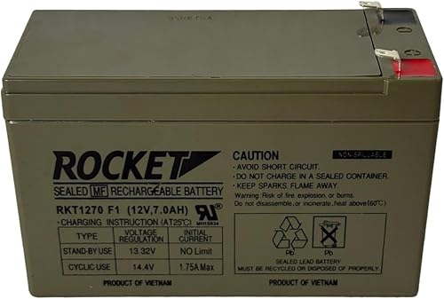 ROCKET RKT1270 12V 7Ah Sealed Lead Acid (SLA) Rechargeable Battery – F1 Terminal – AGM, Maintenance-Free, Backup Power for UPS, Alarm, and Security Systems